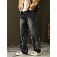 高街渐变牛仔裤直筒男宽松青少年水洗做旧个性秋季新款阔腿裤男生