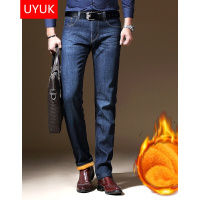 UYUK 2017秋冬新款男士牛仔裤男秋冬款加绒加厚青年直筒宽松冬季男裤子深蓝色