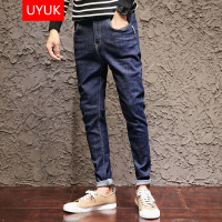 有衣有靠牛仔裤男2017秋冬新款日系小脚牛仔裤青年韩版修身休闲纯色大码牛仔长裤蓝色