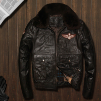 男头层牛皮皮衣真皮机车皮夹克空军飞行服B2飞行员翻领修身外套