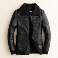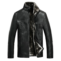 欧洲站皮毛一体男皮衣青年男士加绒加厚外套夹克大衣海宁男皮衣黑色
