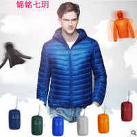 锦铭七玥超轻薄短款时尚男士羽绒服男装新款 轻型羽绒连帽修身外套90绒