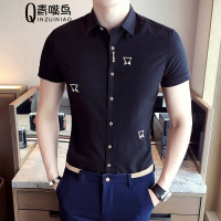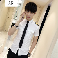 2017夏季新款韩版修身短袖衬衫男夜店衬衣男士空少制服夜店发型师酒吧KTV工作班服潮