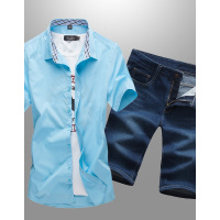 丹杰仕 【夏季新品】2016时尚牛津纺免烫短袖衬衫搭配时尚牛仔短裤小咖秀百搭潮