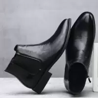 高端复古尖头切尔西靴男士一脚蹬休闲真皮英伦风皮靴中帮马丁靴潮