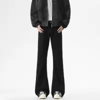 小黑色牛仔裤子男具显高显腿长男女款设计感喇叭牛仔裤男装潮