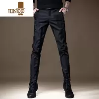YANXU高端潮牌条纹休闲裤男修身小脚英伦黑色韩版弹力长裤子男加绒