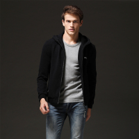 运动卫衣男休闲针织连帽卫衣春秋季黑色拉链毛线圈健身跑步男外套