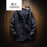 2017新款男士大码日系连帽休闲男士棉衣秋冬加厚中长宽松棉袄时尚百搭潮流男装