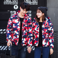 顺崇2017韩版情侣装迷彩羽绒服男短款修身连帽外套女学生棉服潮8810#
