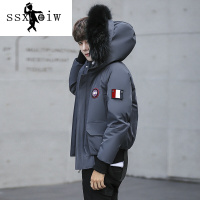ssxoiw2017冬装新款青年带毛领连帽羽绒服男士韩版潮短款宽松帅气外套