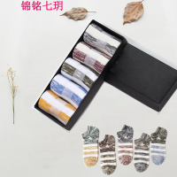 锦铭七玥男士船袜夏季男袜子五角星粗线短袜 复古浅口拼色棉袜