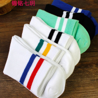 锦铭七玥男袜子 潮款运动袜 韩版棉袜二杠休闲运动条纹中筒袜