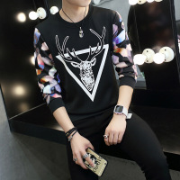 青少年男卫衣时尚长袖T恤秋装鹿头休闲个性潮流套头卫衣男