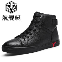 男鞋子冬季新款牛皮高帮休闲鞋韩版百搭青少年学生加绒保暖大小码板鞋男黑色
