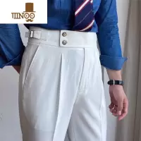 YANXU白色高腰裤直筒那不勒斯休闲免烫商务意式巴黎扣长西裤男