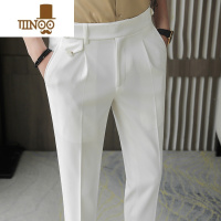 YANXU白色休闲西裤男感潮流修身直筒西装裤商务职业正装长裤子