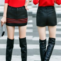 新款显瘦休闲皮裤裙韩版修身大码PU皮裙裤女包臀皮短裤女秋冬黑色