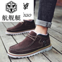 冬季英伦高帮工装复古真皮板鞋新款加绒保暖棉鞋男士马丁靴子皮鞋