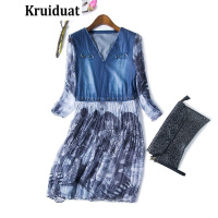Kruidvat2017新款欧美气质真丝连衣裙印花中裙YS牛仔色