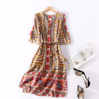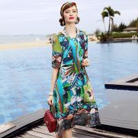 夏季女装新款 欧美时尚夏装印花中裙桑蚕丝大码裙真丝连衣裙
