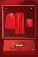 恒源祥羊毛红色睡衣女秋冬款德加厚加绒结婚新情侣家居服男本命年