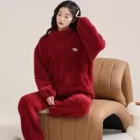 睡衣男秋冬季长毛绒加厚加绒红色本命年法兰绒开衫翻领家居服套装