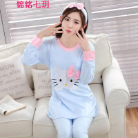 锦铭七玥2017春秋季卡通KT猫长袖女士睡衣韩版棉质女生居服套装