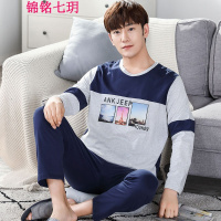 秋冬季冰丝睡衣男士长袖休闲宽松仿真丝加大码家居服套装