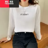 YIBUSHENG新疆棉正肩长袖t恤女装宽松春季圆领内搭打底衫白色上衣