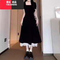 YIBUSHENG茶歇法式黑色吊带连衣裙女季设计感小花背带裙学院赫本风小黑裙