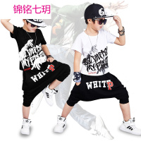 锦铭七玥六一表演服童装2018夏季男童短袖套装p字嘻哈街舞儿童休闲两件套