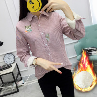 秋冬女装新款文艺刺绣学生mm加绒加厚保暖条纹长袖衬衫女衬衣