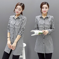 莞馨(wanxin)新款欧洲站时尚纯棉衬衫女2016秋装新款韩版修身格子衬衣女长袖百搭潮
