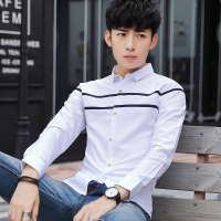 秋季衬衫男长袖纯棉修身衬衣薄款男士青年韩版休闲男装2017新款潮