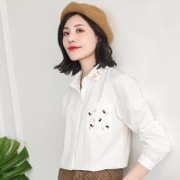 2018春款衬衣女士立领刺绣纯棉衬衫长袖学生新款女装修身打底上衣