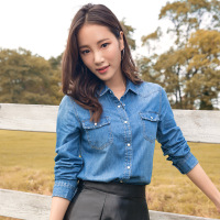 牛仔衬衫女长袖纯棉修身衬衣秋装韩范打底牛仔衣外套CYLLSD