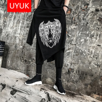UYUK2017秋冬酯新款潮街舞嘻哈裤夜店裙裤男假两件休闲裤青少年运动裤黑色