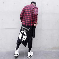 秋季新款17SS裤子假两件国潮高街嘻哈裤男夜店裙裤哈伦裤宽松垮裤