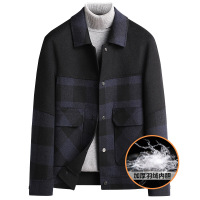 秋冬脱卸羽绒内胆双面呢大衣男士格子羊绒妮子外套中长款羊毛大衣