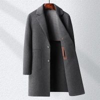 秋冬新款加厚长款西装领羊毛双面呢大衣男士青年修身外套