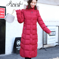 纪尼诗女装2018冬季新款毛领修身加长款韩版大码羽绒服外套胖mm