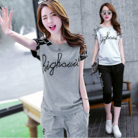 纯色抽绳短袖T恤夏季新款高腰显瘦宽松百搭运动短裤两件套装