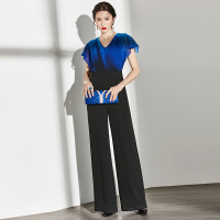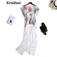 Kruidvat2017夏季新款时尚印花雪纺衫七分阔腿裤套装连体CJ图片色