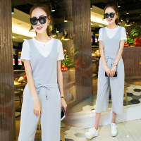 顺崇2018夏阔腿裤套装女韩版修身显高宽裤九分连体裤宽松背带裤两件套潮