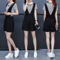 背带裤女短裤夏2017新款韩版学生宽松显瘦两件套装吊带连体阔腿裤