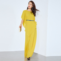 浅黄色雪纺连体阔腿裤长裤女装2018春夏季新款女高腰连体衣
