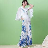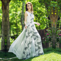 雪纺连体裤女夏季长裤连体阔腿裤女连衣裤子印花修身显瘦