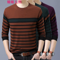 YANXU秋装薄款男士毛衣圆领条纹百搭针织衫时尚休闲打底衫男装衣服