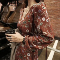 步来褶惠2017春装新款女装百搭夏季长裙韩版时尚春款碎花雪纺连衣裙春夏款图片色夏